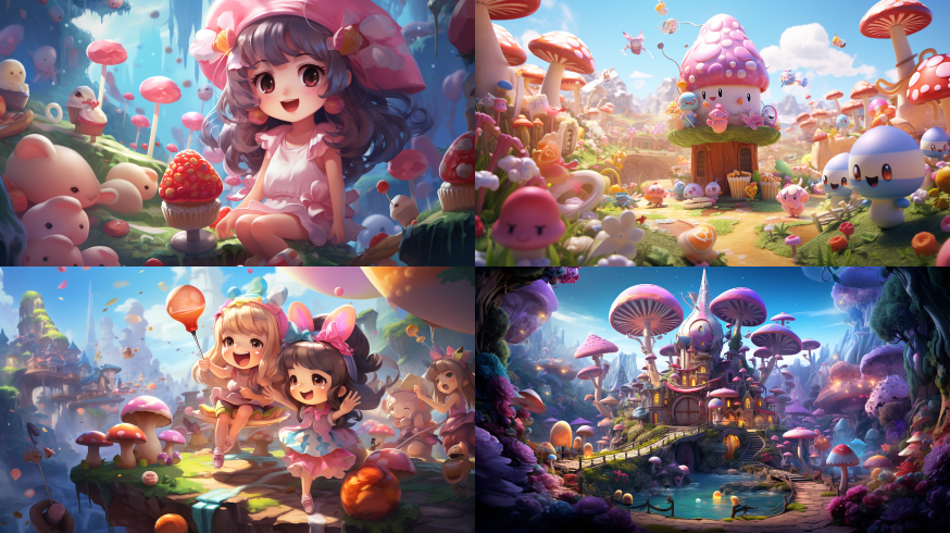 Midjourney Bot 更新时间:2023-08-28 19:23Imagine a charming scene in the art style of Kawaii, where a small creature with a model's face is celebrating its birthday in a mushroom room. The scene is presented from an extreme close-up perspective, with detailed details and bright colors. Some winged elves fly up and down like children, while others are busy on the ground, playing in candy colored clothes. The environment is filled with cute auxiliary elements such as candy, stars, and bows. Presented by Albert Watson - ar in ultra-high detail art --s 180 --ar 16:9 --style raw --v 5.2
