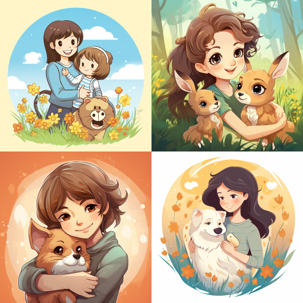 Midjourney Bot 更新时间:2023-08-28 18:53Design an illustration about the mother-child relationship suitable for elementary school students. The subjects can be both humans and animals. --ar 1:1 --v 5.2 --style raw