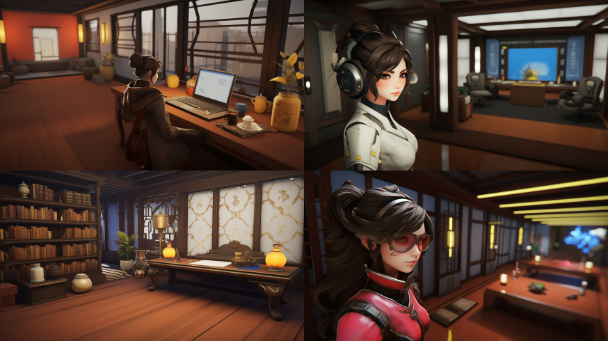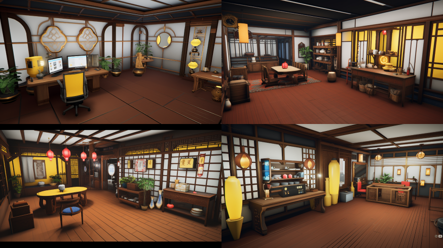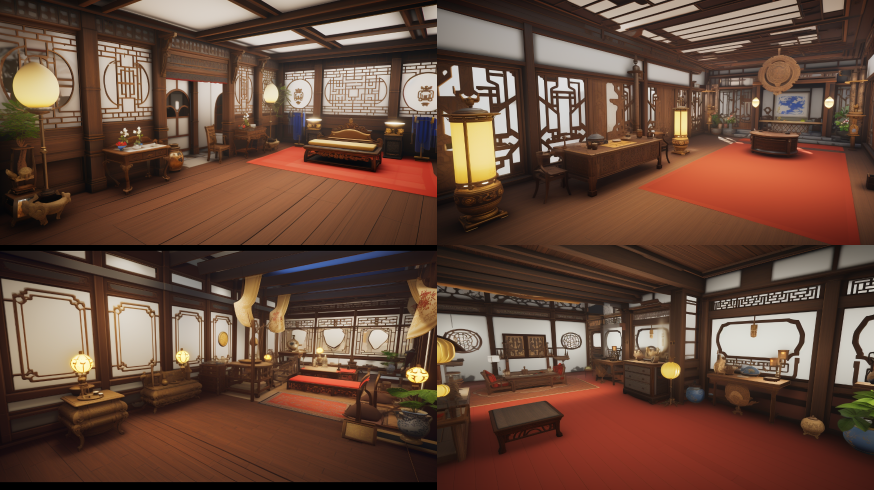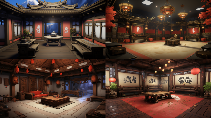 Midjourney Bot 更新时间:2023-08-28 18:31Inside the Treasure Pavilion,Overwatch::1000,Cyberpunk 2077 --no Sofa, lanterns, TV, wooden flooring, characters --s 1000 --c 100 --ar 16:9 --v 5.2