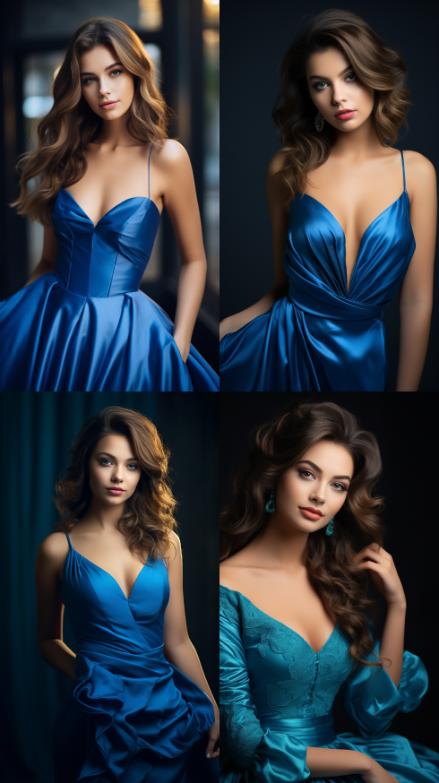 Midjourney Bot 更新时间:2023-08-28 18:25A beautiful woman in a blue dress --ar 9:16 --style raw --v 5.2