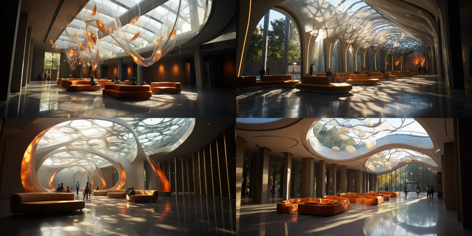 Midjourney Bot 更新时间:2023-08-28 18:12In the center of the hall is a large fish lamp art installation, with some leisure seats on the ground, architectural rendering, architectural lighting, and UHD, --s 1000 --iw 0.5 --ar 2:1 --style raw --v 5.2
