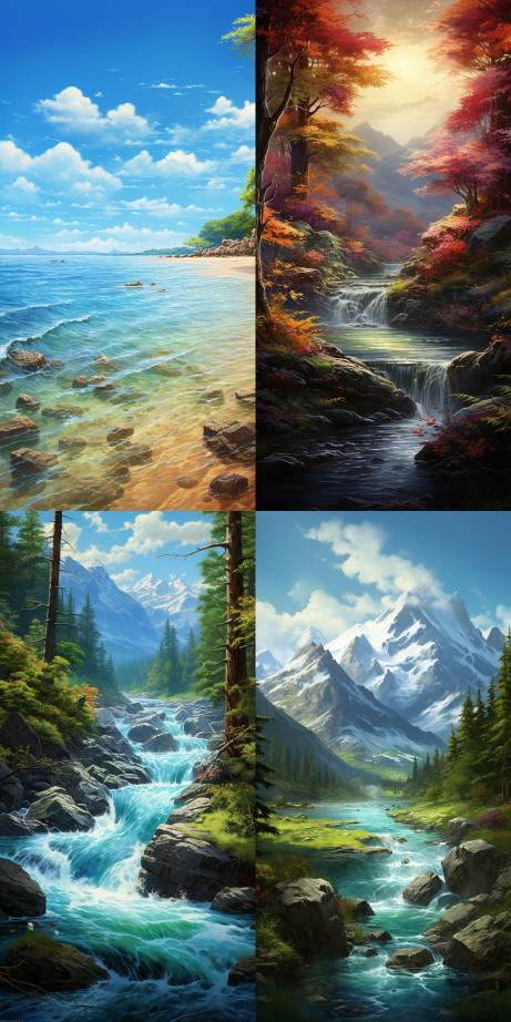 Midjourney Bot 更新时间:2023-08-28 18:35Landscape, water, (very detailed CG unity 8k wallpaper), the world's most beautiful artwork, professional and majestic oil paintings, intricate, high detail, clear focus, dramatic, realistic painting art --ar 1:2 --style raw --v 5.2