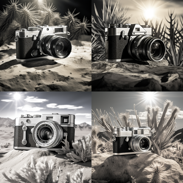 Midjourney Bot 更新时间:2023-08-28 18:22Leica camera,Dual Lighting,,Lens Flare,desert background,bokeh,Photogravure,Infrared photography,Grayscale,Dry brush drawing --ar 1:1 --style raw --v 5.2