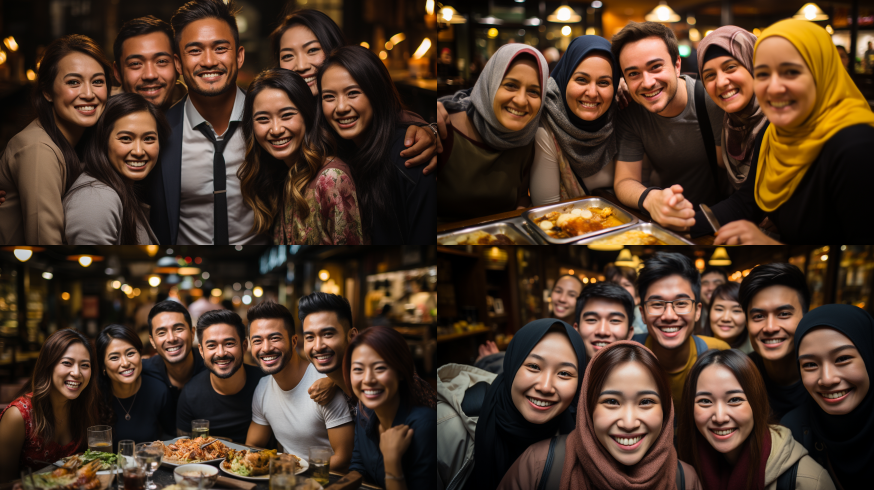 Midjourney Bot 更新时间:2023-08-28 17:52A group Malaysian multi races having dinner and gathering in the restaurant.happy , smile --weird 30 --s 750 --c 20 --ar 16:9 --style raw --v 5.2