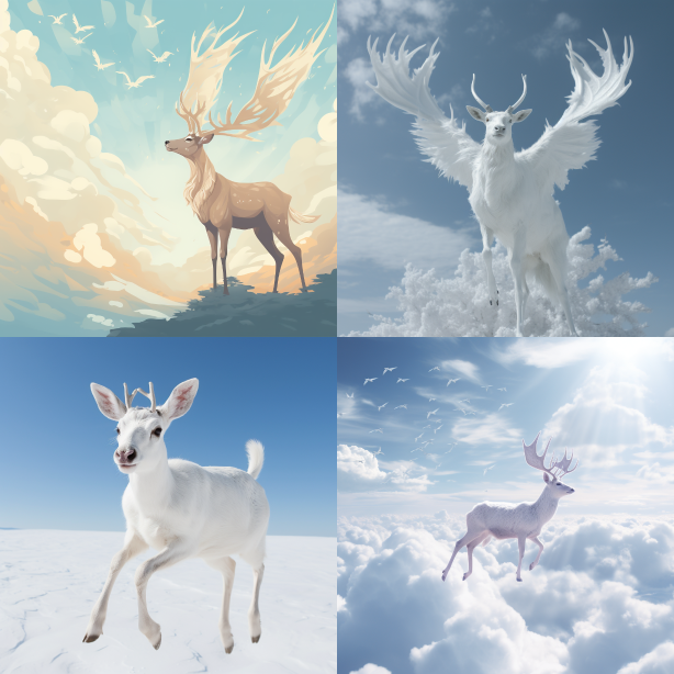Midjourney Bot 更新时间:2023-08-28 17:49White deer flying in the sky, Chinese wind --s 241 --c 43 --ar 1:1 --style raw --v 5.2