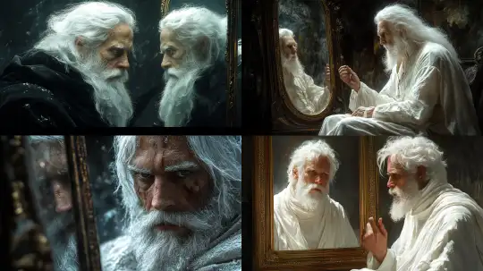 Midjourney Bot 更新时间:2025-01-06 00:09The poet sits in front of the mirror, admiring his head of white hair, 8k. Ultra-detailed --v 6.1 --ar 16:9 --seed 3073180139 --s 824