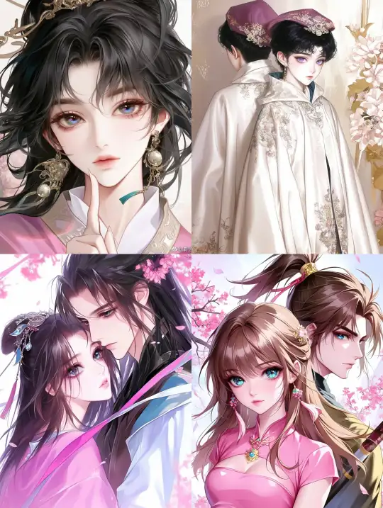 Midjourney Bot 更新时间:2025-01-06 00:12Women and men standing together, Wei Jin style clothing, exquisite facial features, gem like eyes, wide-angle lens, full body close-up lens, rich details, Hanfu, standing painting, ancient China, white drawn comics, flat illustrations, line drafts, animation style, watercolor style, high-resolution, 8k, pure white background, pink white, Chinese style, clear edge lines, a peach blossom decoration, --sref