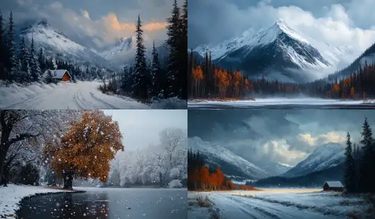Midjourney Bot 更新时间:2025-01-05 00:05Generate an oil painting with a snow scenery like the image, with a thick texture and strong oil painting feel, somewhat like a manga, with strong lines --sref