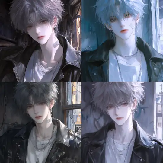 Midjourney Bot 更新时间:2025-01-05 00:05A man with blue-gray hair and amber eyes, indifferent, aloof, wearing a black leather jacket and a white vest, metallic vibe, ear studs, silver necklace, rebellious handsome aura, in an alley, with a band-aid on his face, somewhat disdainful, cool guy, during the day, high-definition close-up, silver-black tone. --niji 6 --ar 1:1 --s 360 --p kci3hd6