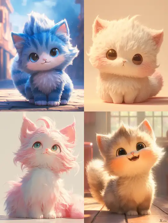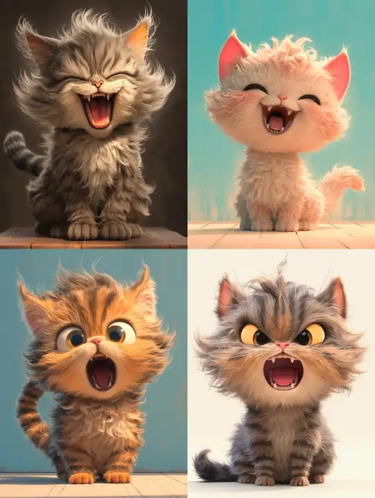 Midjourney Bot 更新时间:2025-01-05 00:083D cute messy cat, tousled hair, mouth open roaring, fluffy plush texture, C4D rendering, IP design, clean background, ultra-detailed, award-winning --niji 6 --ar 3:4 --no Face section body deformation, --s 446