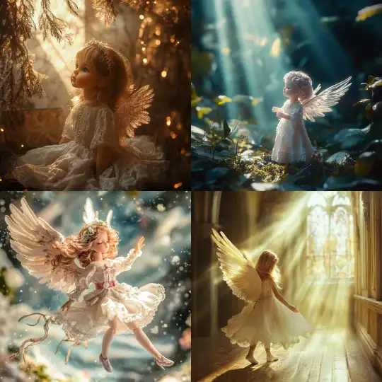 Midjourney Bot 更新时间:2025-01-05 00:09Doll setting, blind box setting, background image, angel, brightness --v 6.1 --ar 1:1