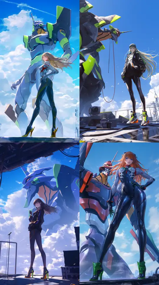 Midjourney Bot 更新时间:2025-01-02 00:15A very beautiful girl wearing black and green high heels, with long hair, stands on stage, taking a photo with the eva02 robot. The stage is equipped with various audio devices, and the background features blue skies and white clouds, creating a full-body shot that showcases stunning details and realistic effects, with ultra-high resolution. It was taken by a Sony A7R5 camera using a G Master lens. --niji 6 --ar 9:16