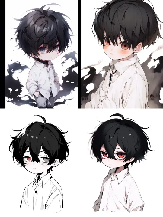 Midjourney Bot 更新时间:2024-12-31 00:15The cute shota is wearing a white shirt, elegant, black hair, messy hair, scary, terrifying, single-line art, chibi version. --niji 5 --ar 3:4