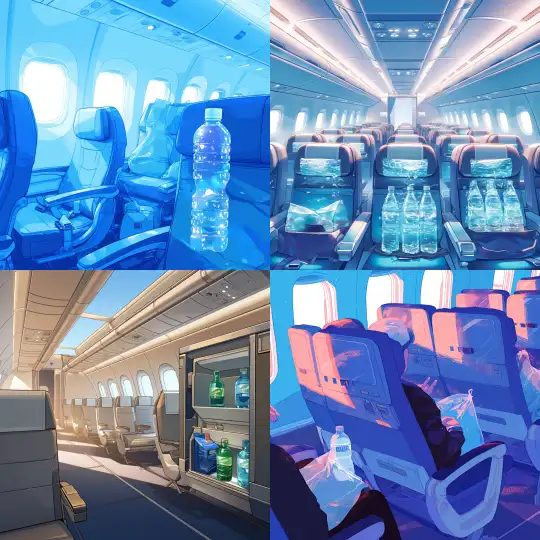 Midjourney Bot 更新时间:2024-12-31 00:28A longitudinal view of the airplane cabin, with a bottle of mineral water placed in a bag behind each seat --niji 6 --ar 1:1