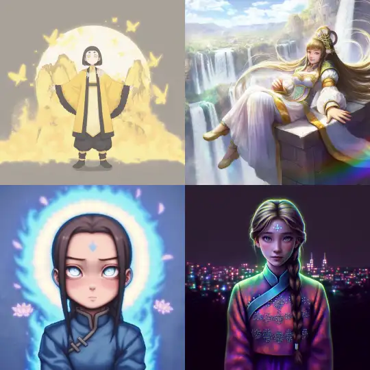 Midjourney Bot 更新时间:2025-01-01 00:02Avatar, a princess --niji 6 --ar 1:1 --s 107 --c 3 --weird 33