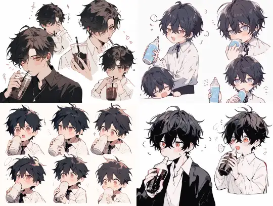 Midjourney Bot 更新时间:2024-12-31 00:02The cute boy is wearing a white shirt, drinking water, elegantly, with black hair and messy hair, scary, terrifying, line art, chibi. comic strips, --niji 5 --ar 4:3