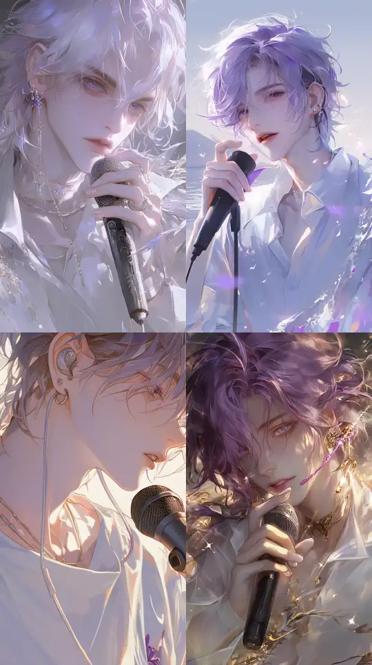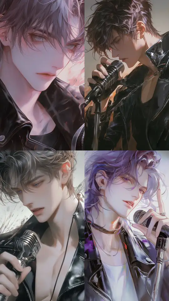 Midjourney Bot 更新时间:2024-12-31 00:05Fair-skinned face, young man, detailed depiction of the eyes, high quality, high definition, super delicate, (atmospheric feel), light purple short hair, messy hair, black leather jacket, holding a microphone, wave feeling, soft texture, dynamic, long eyelashes, Chinese traditional Dunhuang mural style, sketch, (frontal), (close-up of the face), perfect composition, smooth lines, (close-up), --niji 6 --ar 9:16 --style raw --s 250