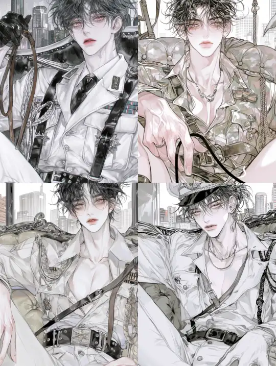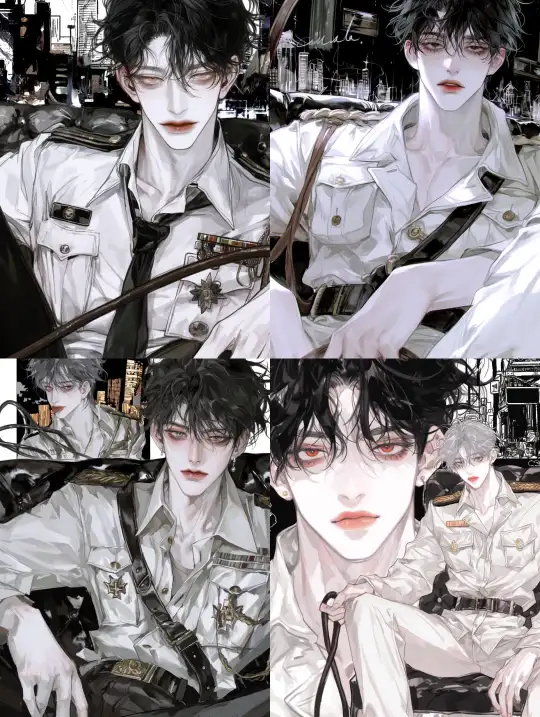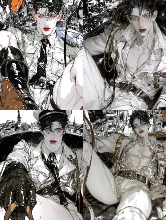 Midjourney Bot 更新时间:2024-12-31 00:07A handsome adult man is sitting on the sofa, with a black and white comic-style city in the background. He is wearing a military uniform, has very fair skin, big eyes, double eyelids, and bright red lips. The perspective is frontal, at eye level, with a color palette dominated by silver white and light amber. It’s a half-body close-up of the character, who has black hair and is holding a leather whip in his hand. --niji 6 --ar 3:4 --style raw --no side --s 1000 --p spr1pcg