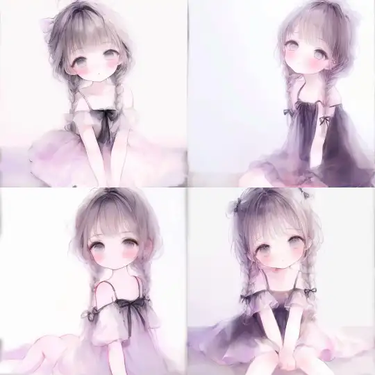 Midjourney Bot 更新时间:2024-12-31 00:03light watercolor, Pure white background, upper body, a girl, melancholic, Q-version, brown hair, low ponytail, wearing a dress with shoulder straps, sitting on the ground, looking up --sref