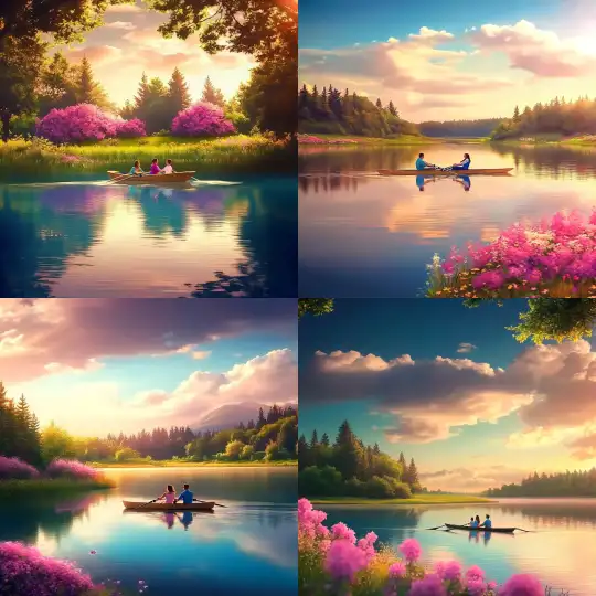 Midjourney Bot 更新时间:2024-12-29 00:16A couple is rowing in the lake. --sref