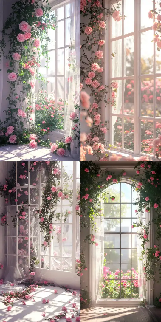 Midjourney Bot 更新时间:2024-12-28 00:01Ins style, black and pink rose vines, white windows with flower beds outside, sunlight, gauze curtains, 3D, surreal, 8K resolution, ultra high definition, high detail --v 6.1 --ar 1:1