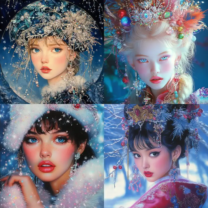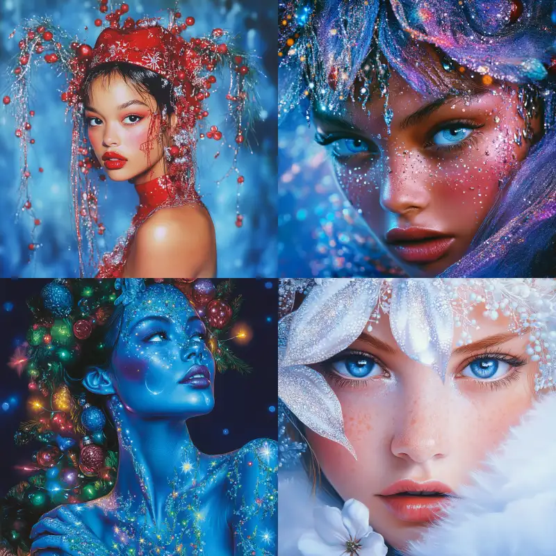 Midjourney Bot 更新时间:2024-12-25 00:07Avatar, a fashionable girl for Christmas Best quality,Pierre et Gilles, --v 6.1 --ar 1:1 --style raw --s 156 --c 2 --weird 2