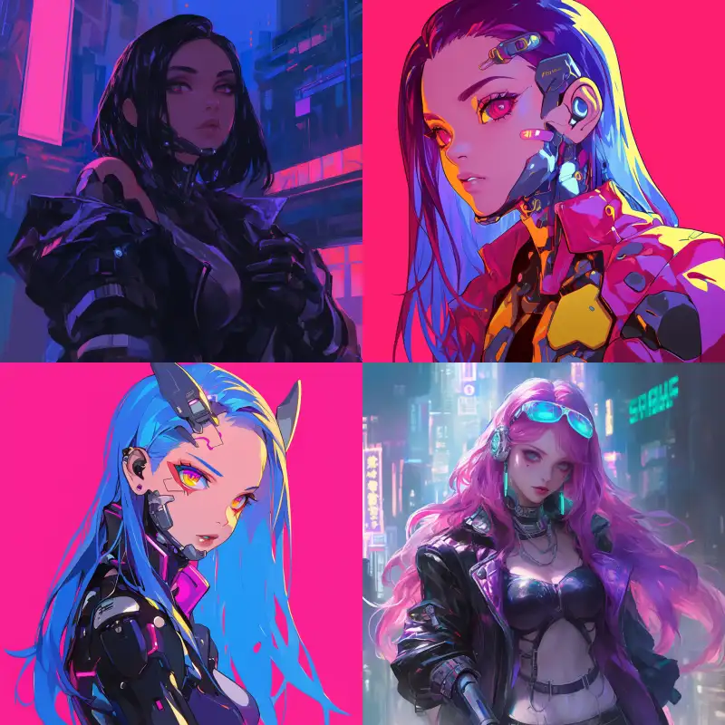 Midjourney Bot 更新时间:2024-12-26 00:01Cyberpunk Girl --niji 6 --ar 1:1