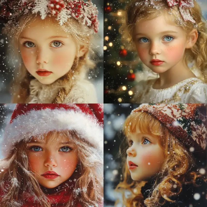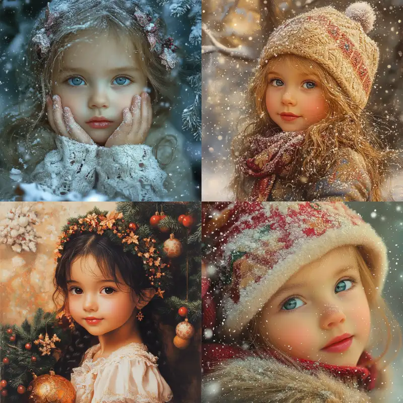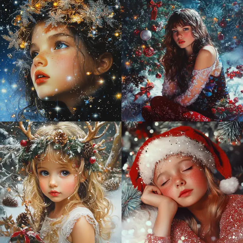Midjourney Bot 更新时间:2024-12-25 00:01A little girl on Christmas delicate skin texture,Best quality,Pierre et Gilles, --v 6.1 --ar 1:1