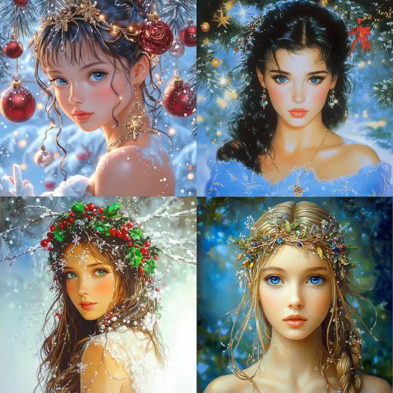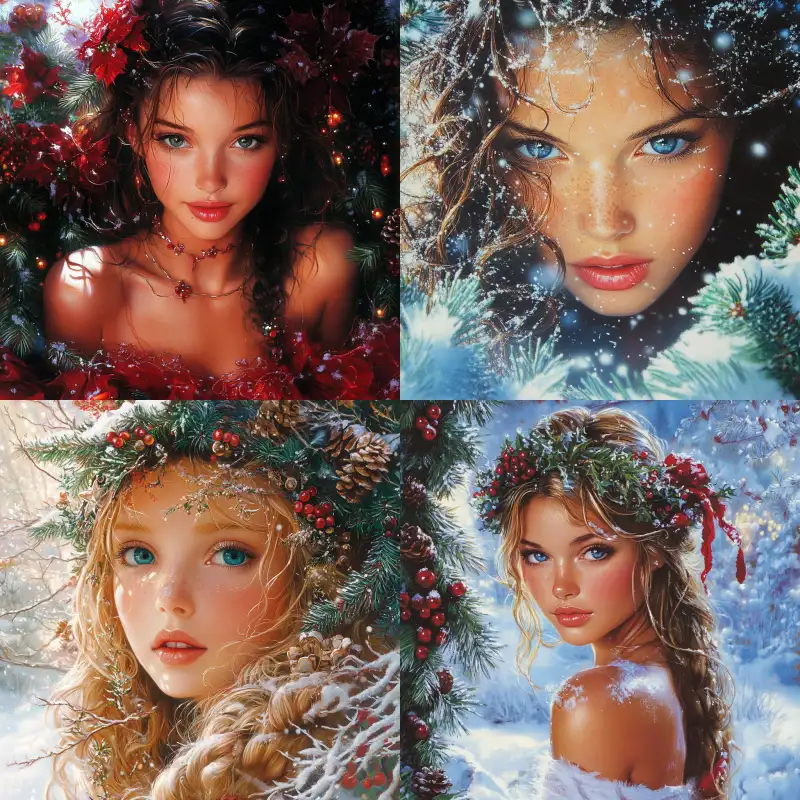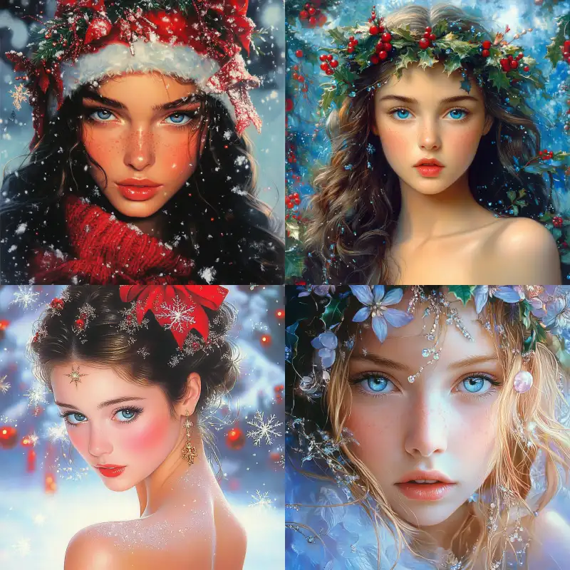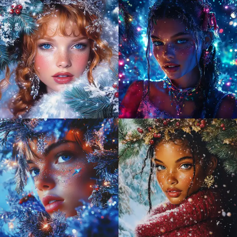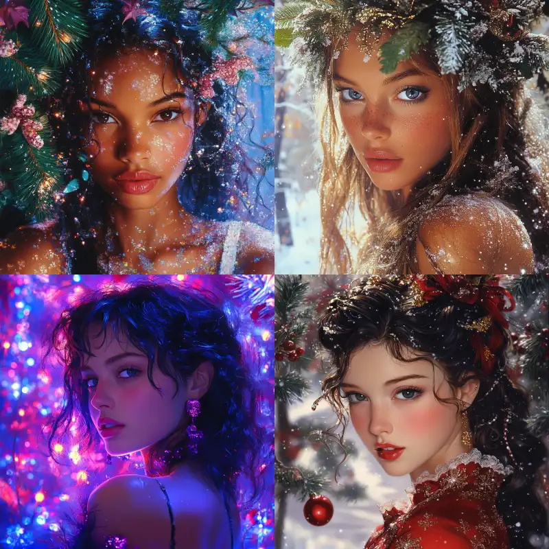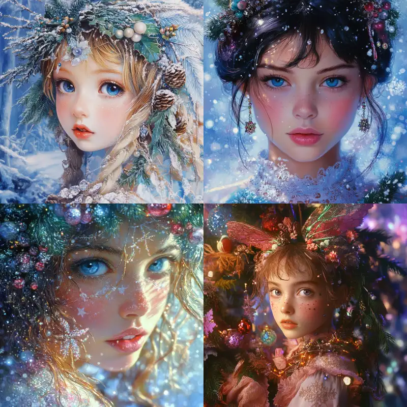 Midjourney Bot 更新时间:2024-12-25 00:05Avatar, a pretty girl on Christmas Best quality,Pierre et Gilles, --v 6.1 --ar 1:1 --style raw --s 156 --c 2 --weird 2
