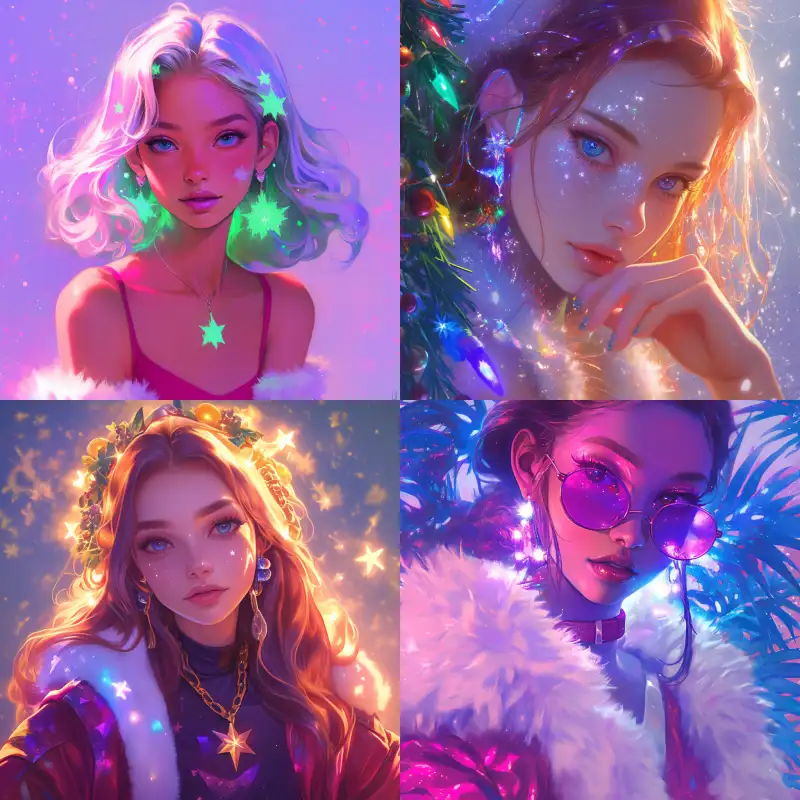 Midjourney Bot 更新时间:2024-12-25 00:03Avatar, a cool girl in a Christmas atmosphere Best quality,Pierre et Gilles, --niji 6 --ar 1:1
