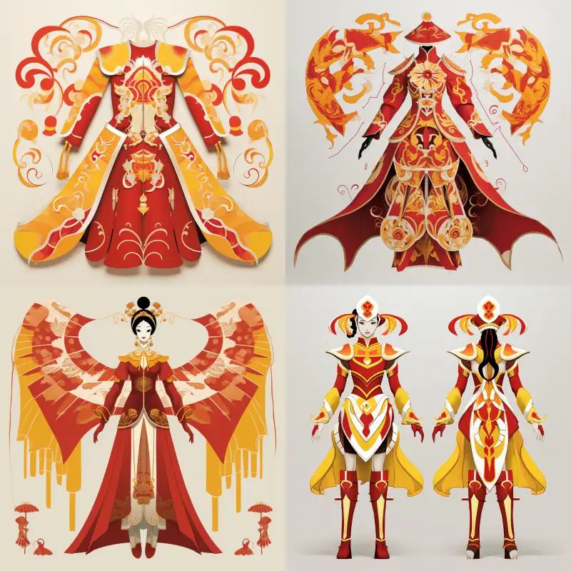 Midjourney Bot 更新时间:2024-12-14 00:32Design a set of theme park parade character costumes inspired by Chinese paper-cutting elements. The costume is in two parts, with a long-sleeve jacket for the upper body, featuring exaggerated silhouette design and a large silhouette made from hollowed-out fabric. The color scheme of the costume is primarily red, complemented by yellow and white. The lower half consists of a lantern skirt that also incorporates paper-cut patterns, presenting exquisite paper-cut designs to enhance the artistic feel and uniqueness of the costume. This set of costumes is suitable for outdoor performances and parades, showcasing the unique characteristics of Chinese paper-cutting. The costume should be full of festive atmosphere and celebratory ambiance. The model is a young and beautiful girl, and the costume is photographed as a full-body shot to create a 3D stereoscopic effect. --v 5.2 --ar 1:1