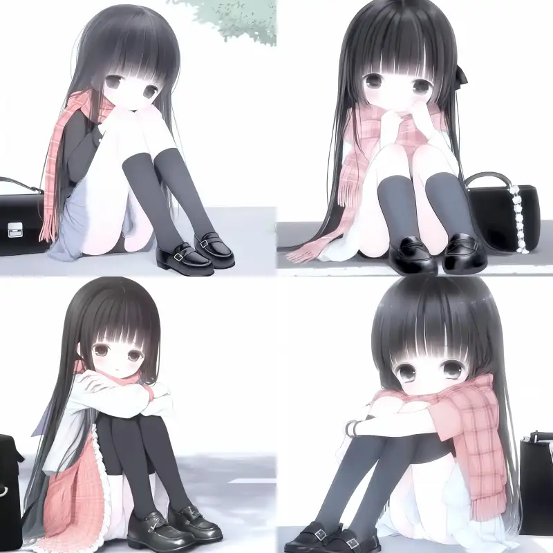 Midjourney Bot 更新时间:2024-12-11 00:15Roadside background, long straight black hair with bangs, wearing a red plaid scarf, sitting on the ground, sitting by the road, dressed in black stockings and black leather shoes, next to a black handbag, rich in detail, ultra-high quality, full body shot, full-length photo. --sref