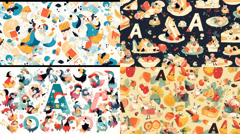Midjourney Bot 更新时间:2024-12-12 00:01Letter a graffiti vector pattern --niji 5 --ar 1:1 --style cute