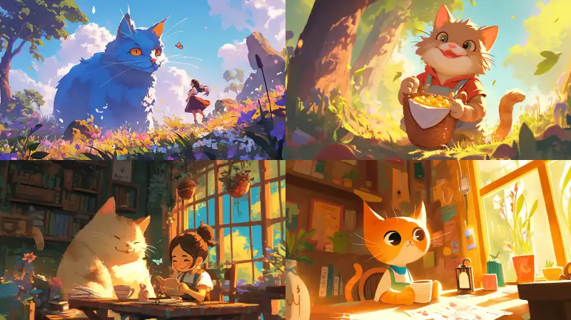 Midjourney Bot 更新时间:2024-12-12 00:02Cartoon cat, children's picture book --niji 6 --ar 16:9