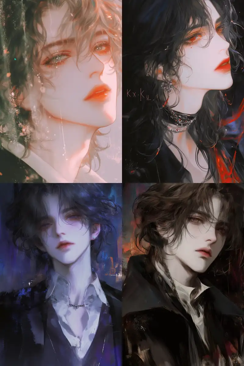 Midjourney Bot 更新时间:2024-12-03 00:10Half-length close-up, facial close-up shot, realistic pad picture style, pearl-like texture, dreamlike blurry image, handsome man, delicate eyebrows and eyes, fair skin, luminous complexion, hazy dreaminess, a head of light white long hair, flowing freely, strands like a waterfall, hair fluttering, a pair of phoenix eyes with upturned ends, red eyeshadow at the outer corners, a pair of black pupils, wearing a white low-collar shirt, silk texture, pearlescent luster, collar of the shirt open, revealing the collarbone, around the neck is tied a black satin ribbon, several tarot cards scattered by the hand, blue-black butterflies fluttering beside him, nighttime background, overall atmosphere dreamy, blurry beauty, misty, realistic thick paint style, pad picture style, matte texture, high quality, 8k --v 6.1 --ar 9:16 --s 580 --c 59 --quality 2