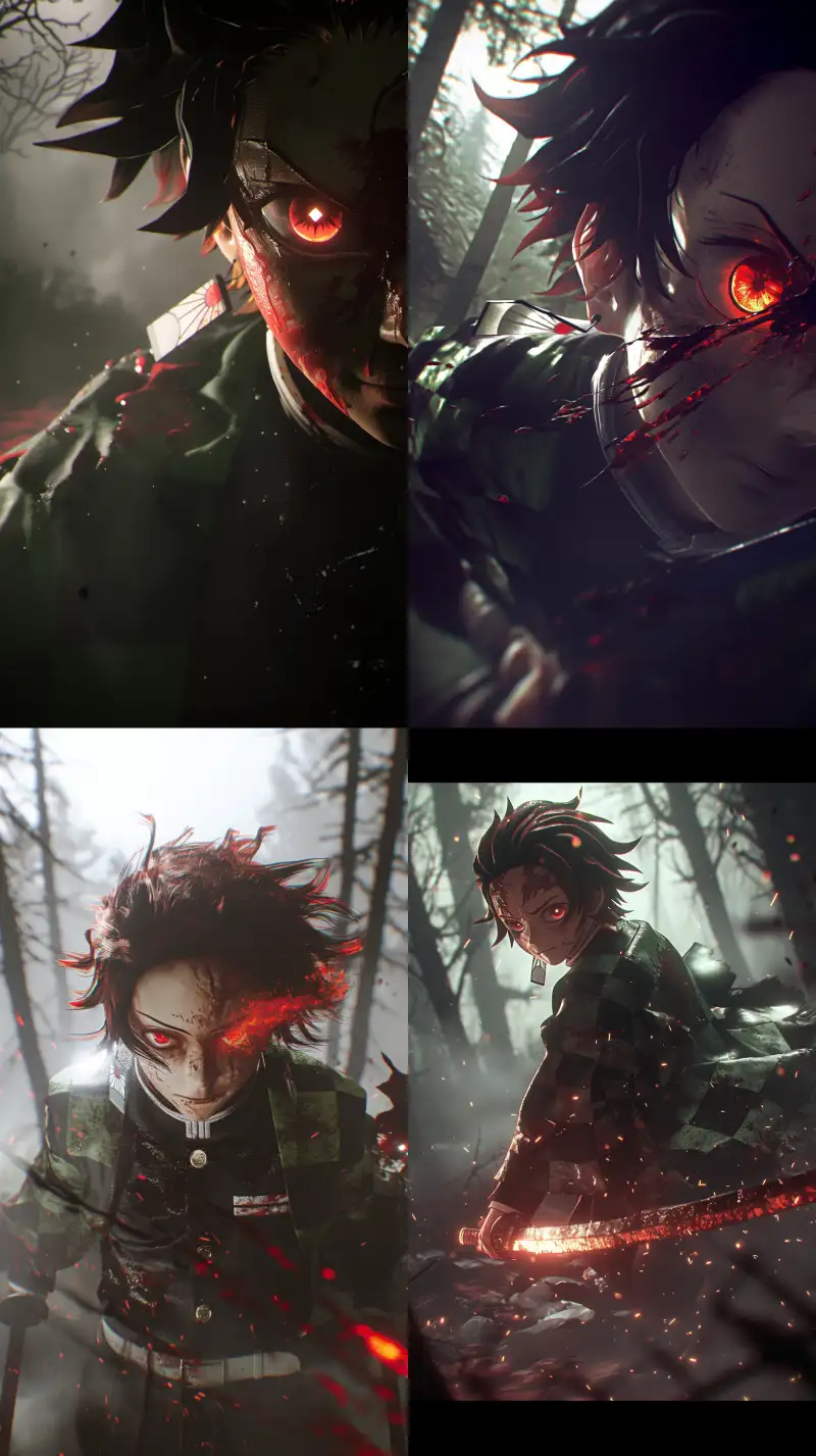 Midjourney Bot 更新时间:2024-11-24 00:08Close-up from the waist up, Tanjiro Kamado is in a gloomy forest. He has short black hair with deep red tips, a scar on his forehead, and his red eyes are determined and brave. He is wearing the Demon Slayer Corps uniform, which is black and green, and carrying a Nichirin Blade, surrounded by eerie mist. High-detail skin texture, high-detail hair quality. The image has high resolution, high detail, clear focus, complex details, and a high level of realism. The lighting is cinematic, with natural light and professional color grading, as well as cinematic post-production, capturing professional photography. Best quality,UHD,Photorealistic,Realistic anime style,photorealistic,octane rendering,unreal engine 5, --sref 137 --niji 6 --ar 9:16 --style raw --sw 40 --s 250