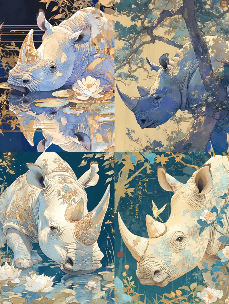 Midjourney Bot 更新时间:2024-11-23 00:05Song embroidery, watercolor angry rhino, glass painting, ultra-high quality 32k, delicate texture, exquisite craftsmanship, Song Huizong style, Zhang Daqian style, rich details, artistic sense, traditional craft, cultural heritage, cyan and gold, high-end color scheme, high resolution, traditional aesthetics --niji 6 --ar 3:4 --no person --s 946