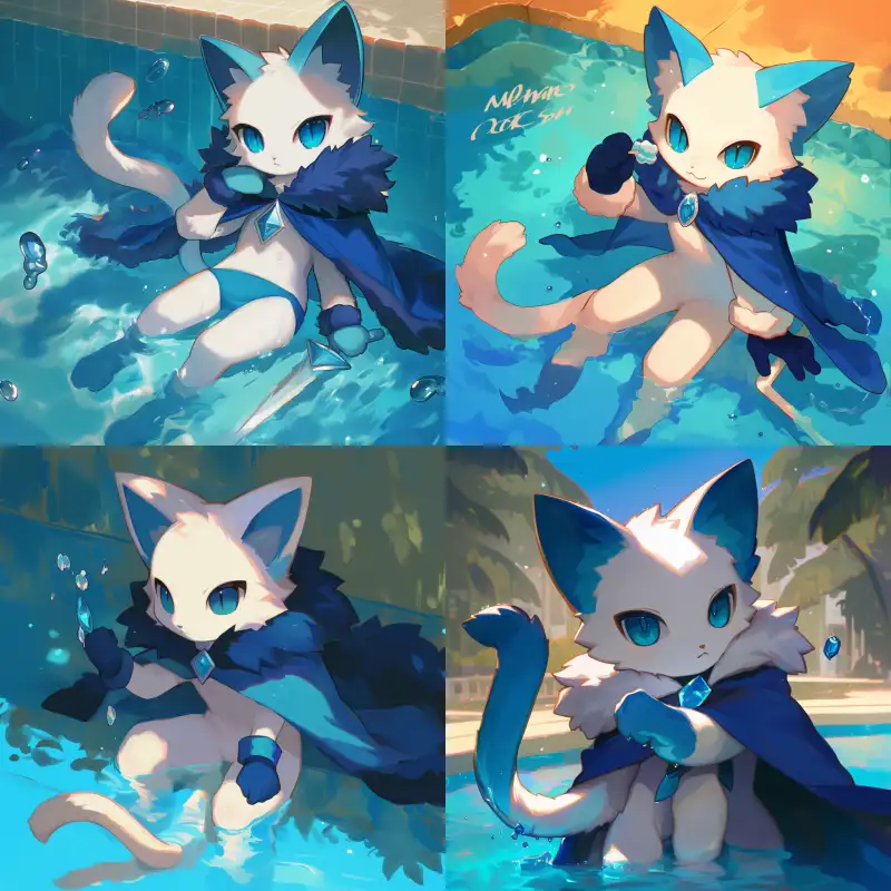 Midjourney Bot 更新时间:2024-11-22 00:03Cat star, handsome, in the pool 16K, --cref