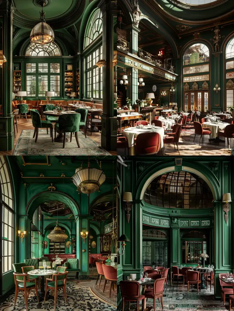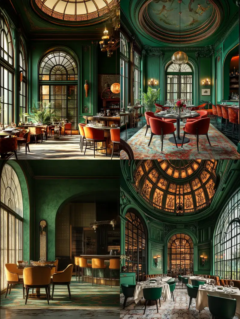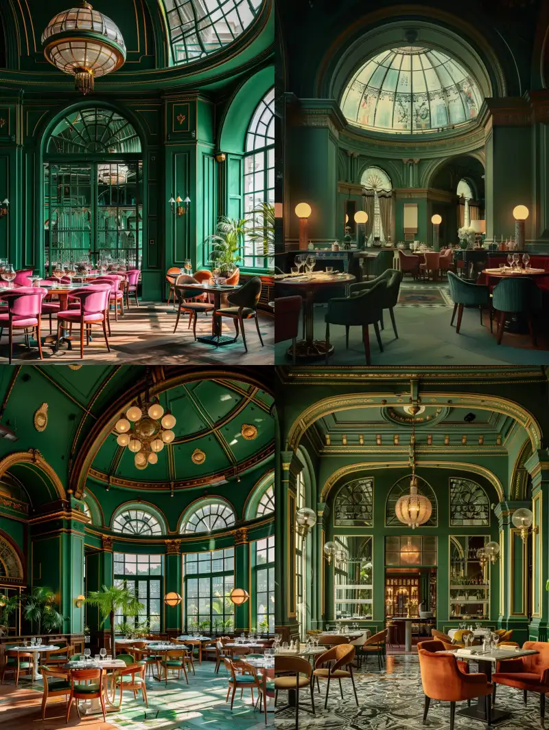 Midjourney Bot 更新时间:2024-11-21 00:07A high-end Western restaurant movie scene shot in the style of ARRI ALEXA Mini LF, featuring large areas of imperial green walls, bold color clashes, a curved dome, glass decorative windows, complemented by elegant and exquisite furniture, vintage table lamps, showcasing luxury and wealth. The film still captures the grandeur of a rich living space, highlighting the elegance of architectural and design elements, with soft lighting that emphasizes the spaciousness and refined decor of high-end residences, still shot in the style of movie scenes, creating a vivid scene in the style of cinematic static shots. --v 6.0 --ar 3:4