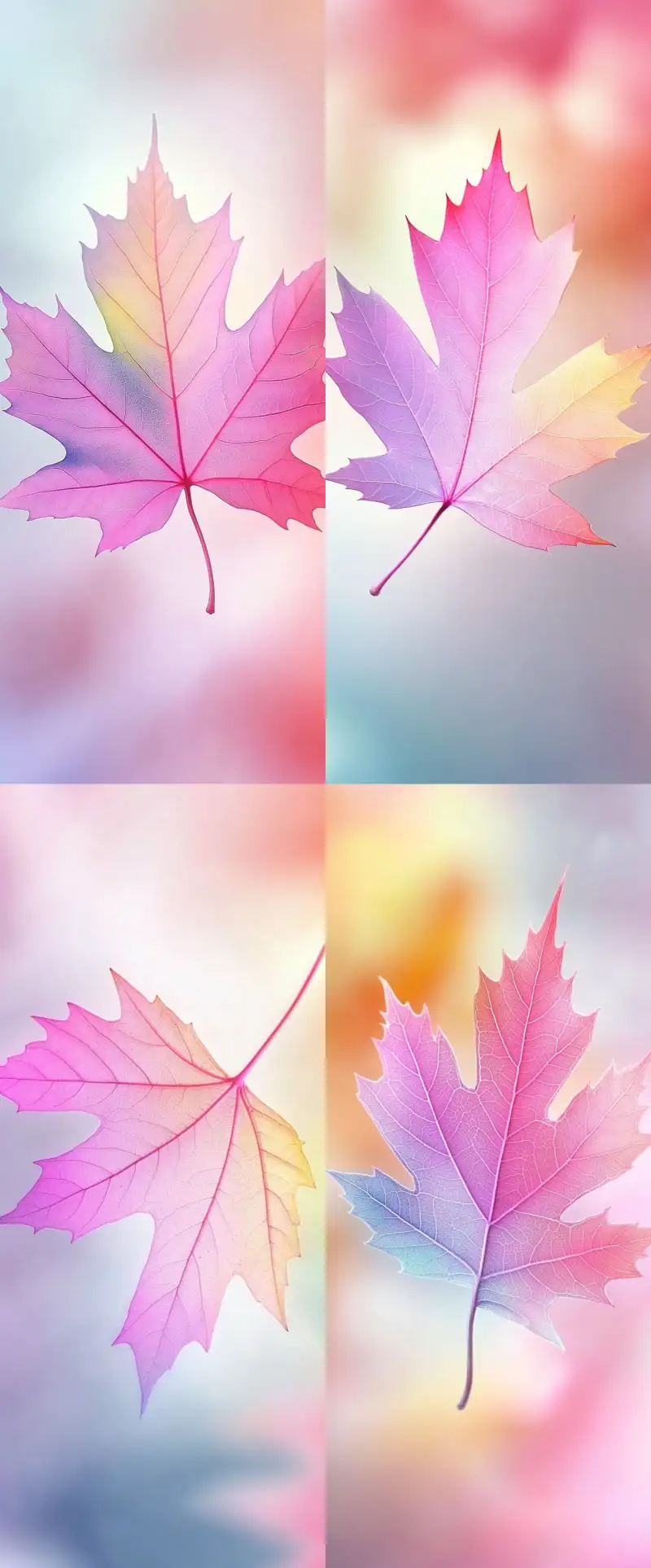 Midjourney Bot 更新时间:2024-11-19 00:00Half maple leaf, pink, gradient colorful --sref