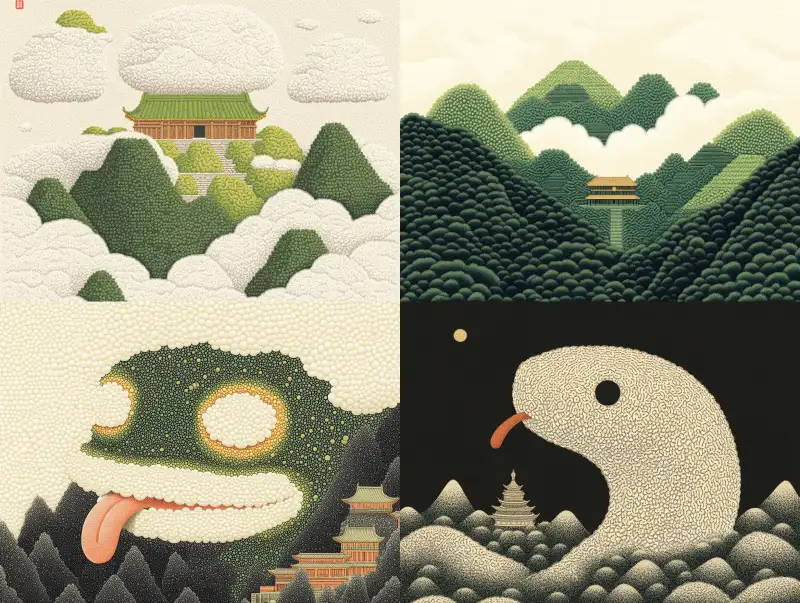 Midjourney Bot 更新时间:2024-11-17 00:04In mysterious ancient China, mountains, traditional Chinese architecture, auspicious clouds, a python flicking its tongue, and an ethereal atmosphere. In the background is an ancient temple and vibrant ethnic fashion elements, blending modern and traditional designs, showcasing a prosperous cultural ambiance. The color tones are warm and the layers rich, as if telling a story about happiness and prosperity, with a clever composition. --sref 3591939648 --v 6.1 --ar 4:3 --style raw --sw 500 --s 1000 --c 2 --p 3xdy3qw