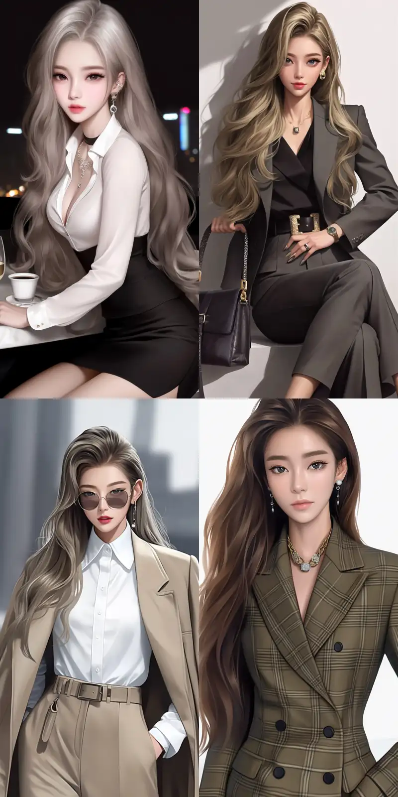 Midjourney Bot 更新时间:2024-11-15 00:04A beautiful Korean idol girl, light gray long hair, full-body image, wearing casual suit, professional photography, very detailed, realistic, high quality, high detail, high resolution, 8K, white background, --sref
