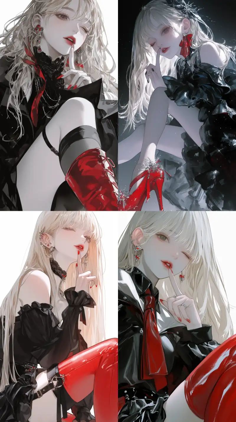 Midjourney Bot 更新时间:2024-11-15 00:06A beautiful Korean female idol, wearing red high heels and a black dress, blonde hair, bending down, one finger placed in front of her mouth, winking and smiling, low angle, from below, charming composition. --niji 6 --ar 9:16 --p mg5932m