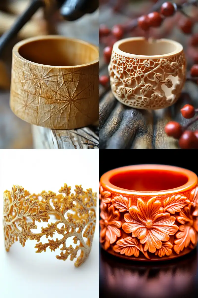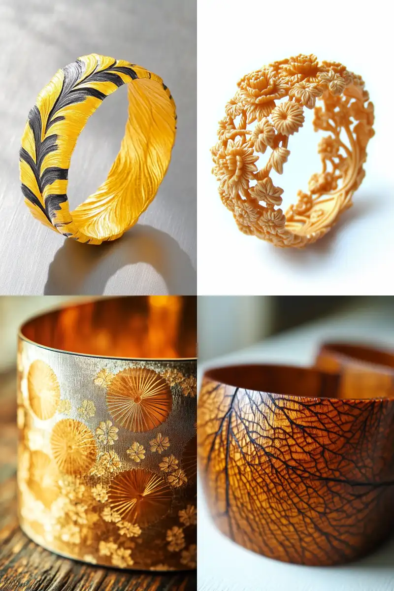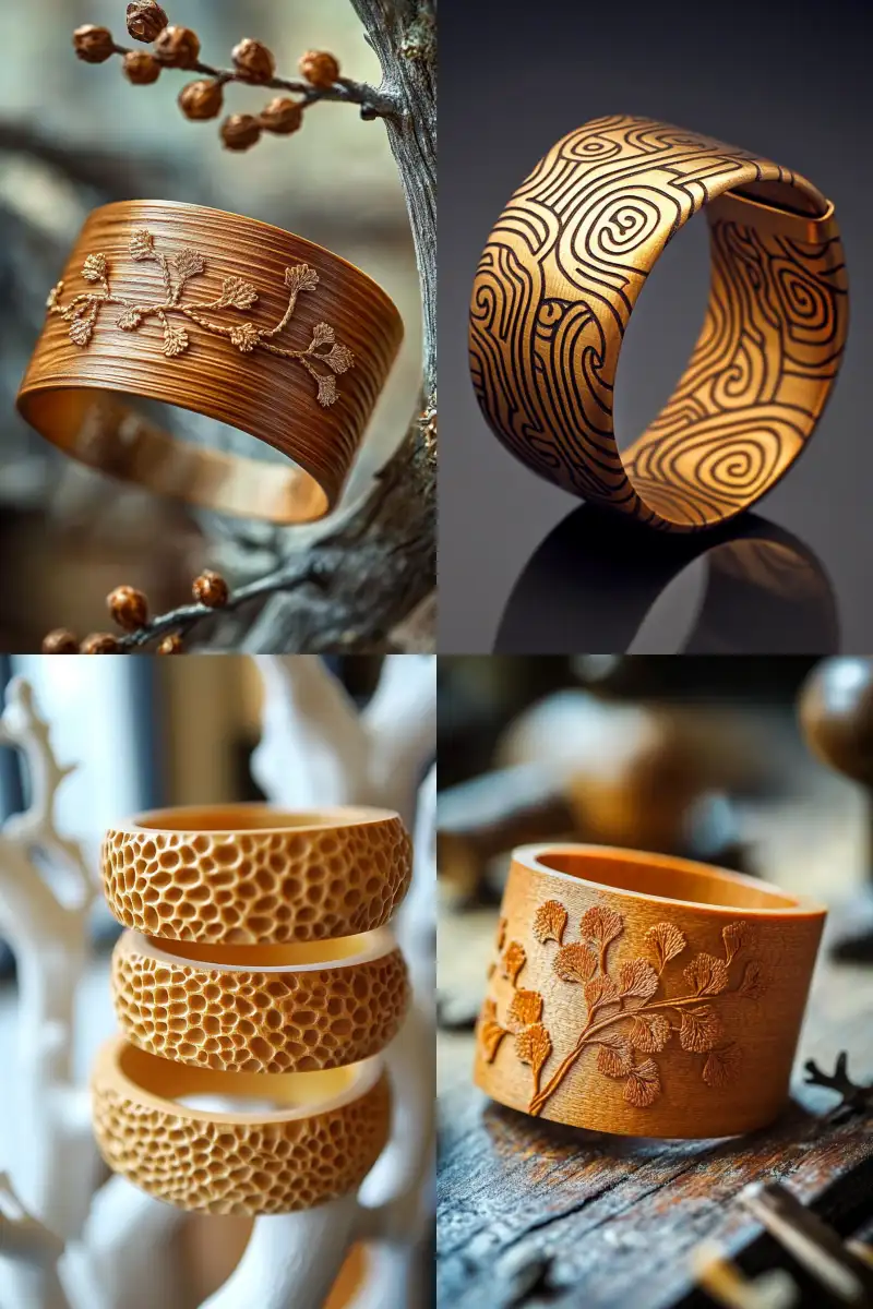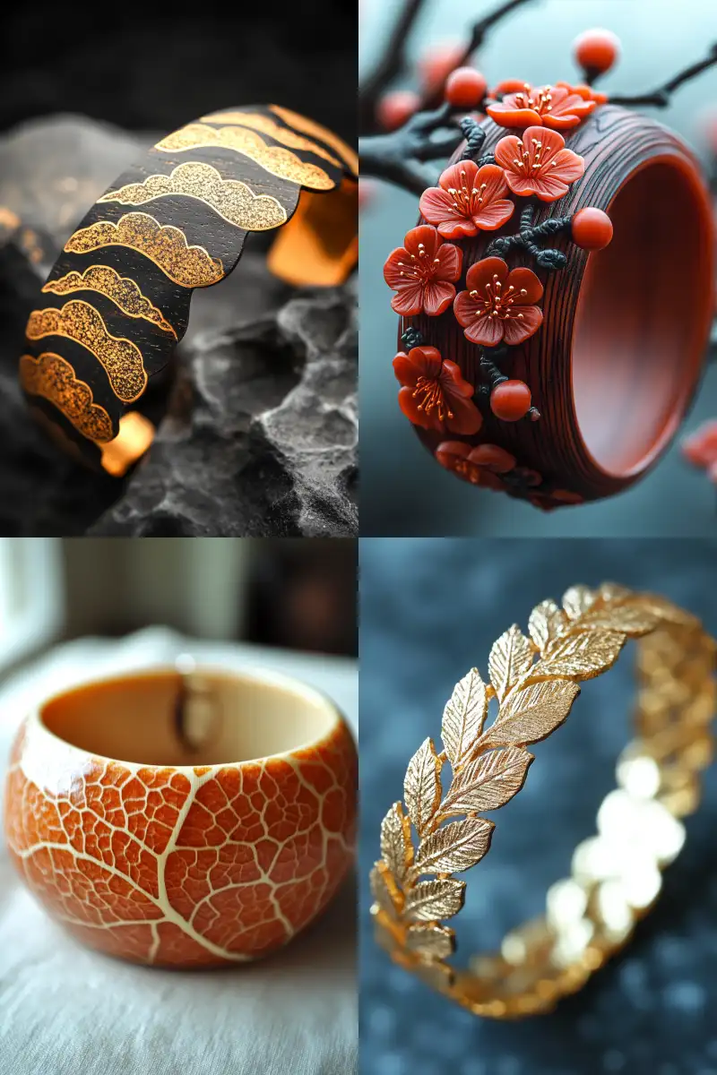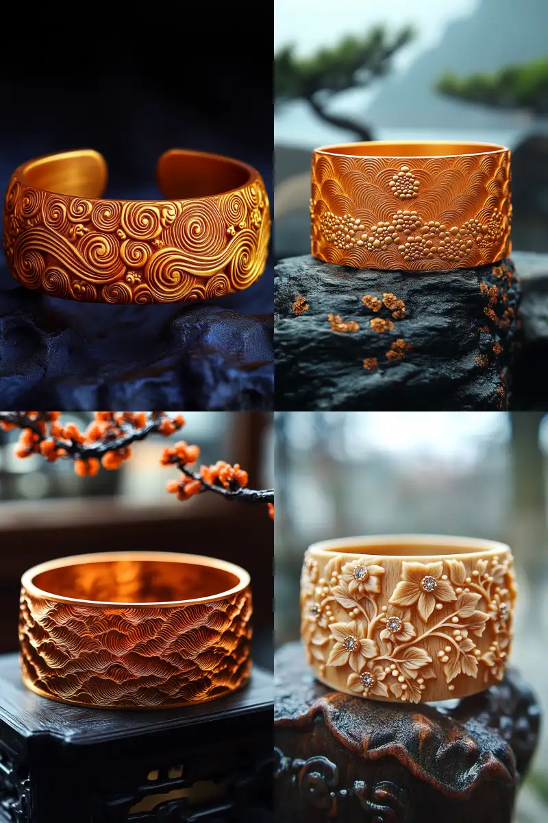Midjourney Bot 更新时间:2024-11-14 00:01Gold silk nanmu wood bracelet. The surface features exquisite embossed patterns, ins style, with complete and intact designs. Zen aesthetic. Strong artistic shape. --v 6.1 --ar 2:3 --s 1000 --c 3 --weird 8