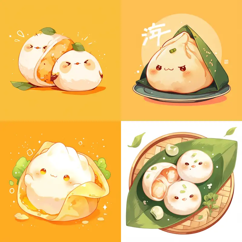 Midjourney Bot 更新时间:2024-11-13 00:03Cute simple stroke style: refrigerator sticker design combining Wonton and swallow with Fuzhou characteristics. The design drawing should have the shape of Wonton and the characteristics of swallow. The style of painting is cute, the color is bright, and the face is cute with simple strokes --niji 6 --ar 1:1