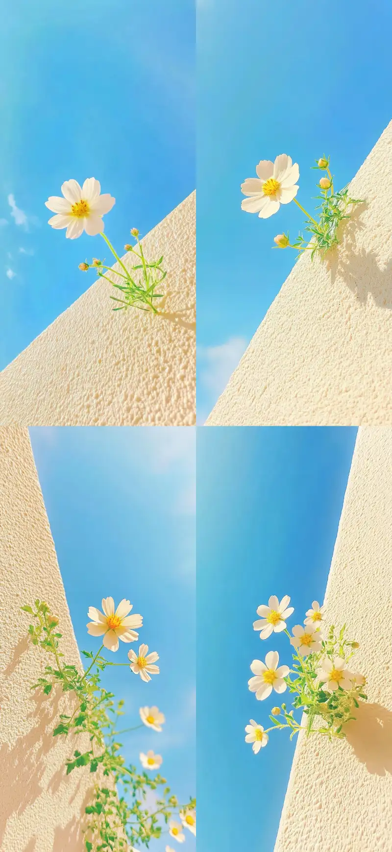 Midjourney Bot 更新时间:2024-11-10 00:00Little flower, corner of the wall, blue sky, amazing details and clarity. Bright colors, bright. --sref