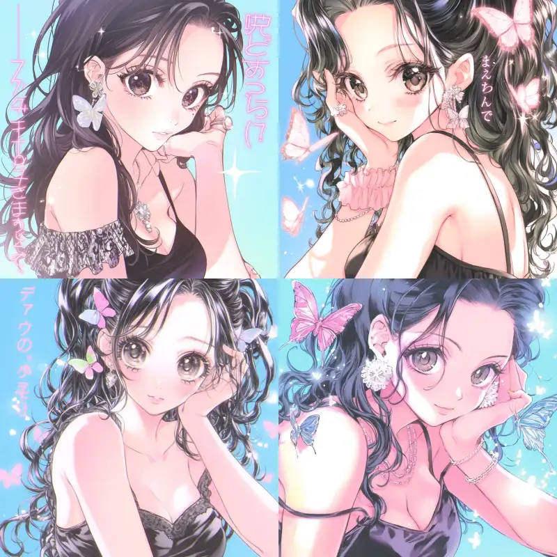 Midjourney Bot 更新时间:2024-11-10 00:02A girl with long black wavy hair and brown eyes, wearing a black spaghetti strap dress, with a crown on her head and butterflies resting on her hand, adorned with butterfly earrings, set against a light blue background in high definition. --sref