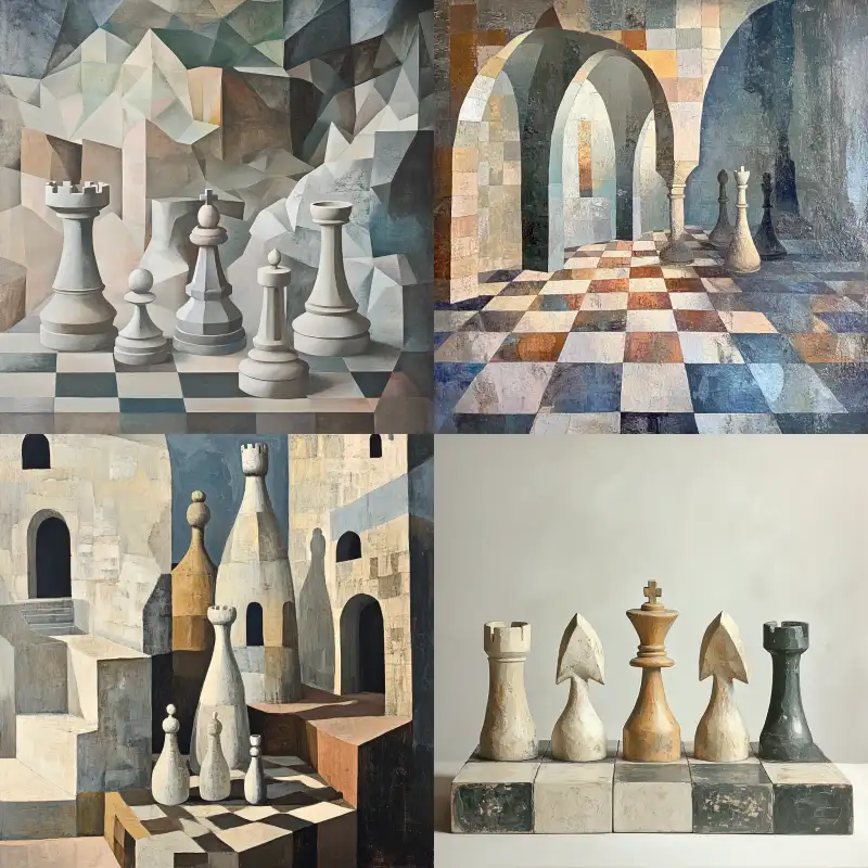 Midjourney Bot 更新时间:2024-11-04 00:00Light color scheme, abstract geometry, chess --v 6.1 --ar 1:1
