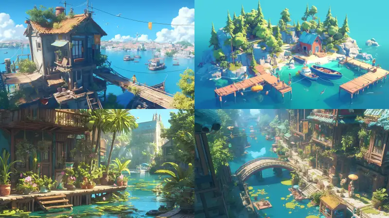 Midjourney Bot 更新时间:2024-11-02 00:02Port, river water, many plants, simple background, Pixar Disney style, 3D model --niji 6 --ar 16:9 --s 335