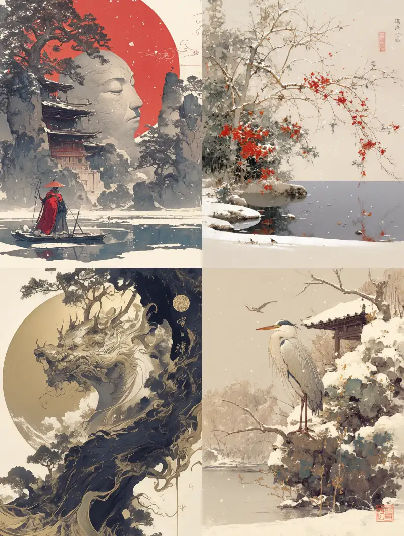 Midjourney Bot 更新时间:2024-11-02 00:04Song embroidery, brush Chinese painting, snowing, desert, ultra-high quality 32k, delicate texture, exquisite craftsmanship, Song Huizong style, rich details, artistic sense, traditional craftsmanship, cultural heritage, high resolution, natural light, static, dark tone, historical sense, cultural symbol, traditional aesthetics --niji 6 --ar 3:4 --s 360